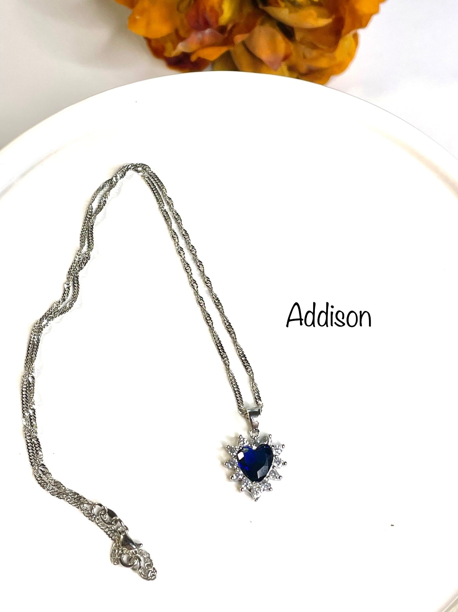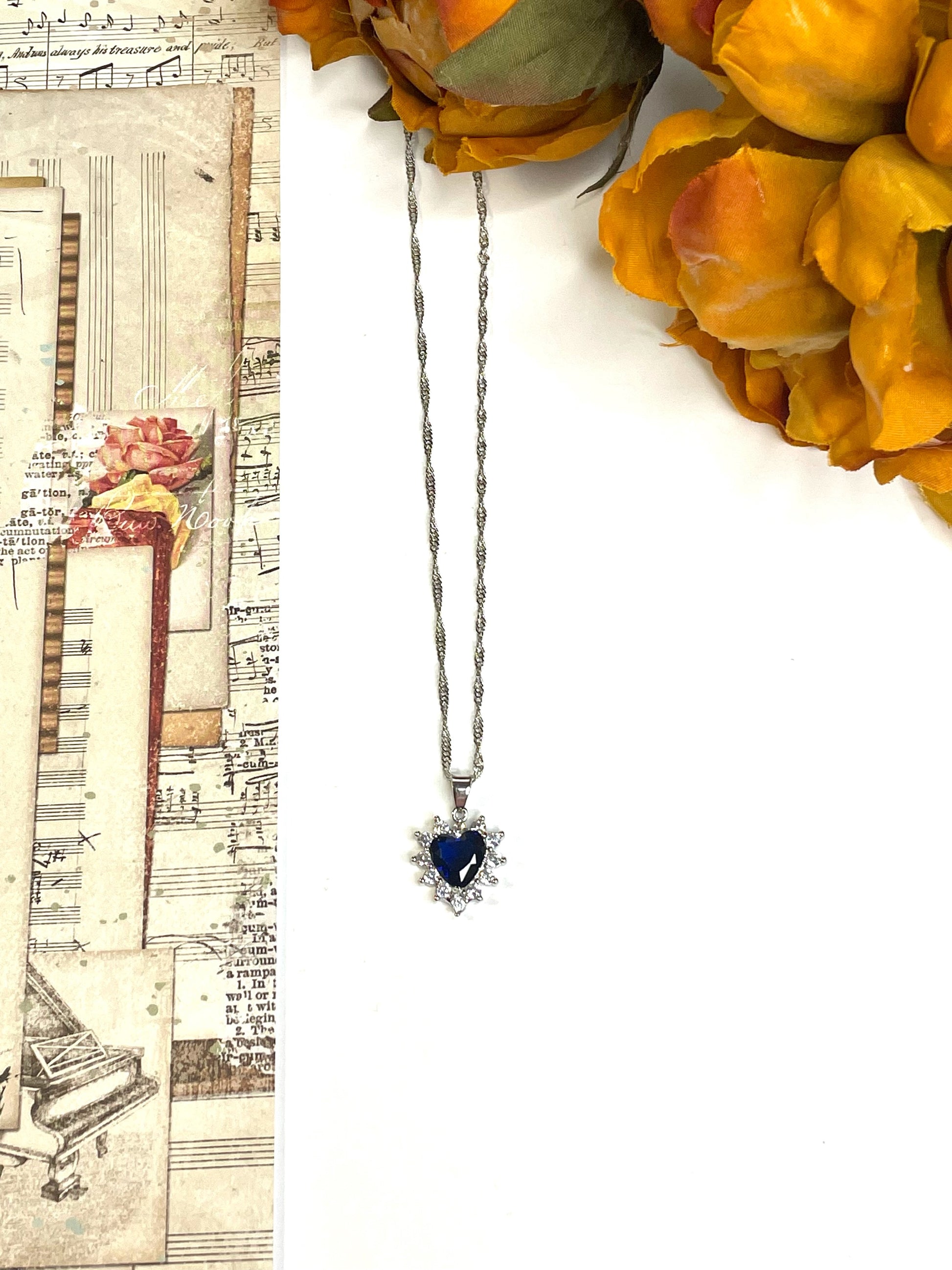 This stunning, fashionable blue sapphire pendant necklace boasts a cozy allure, nestled within a heart-shaped setting of .925 sterling silver adorned with CZ diamonds. Paired with a sterling silver necklace, the pendant exudes a timeless elegance and vintage charm, presenting a truly exquisite and captivating aesthetic.