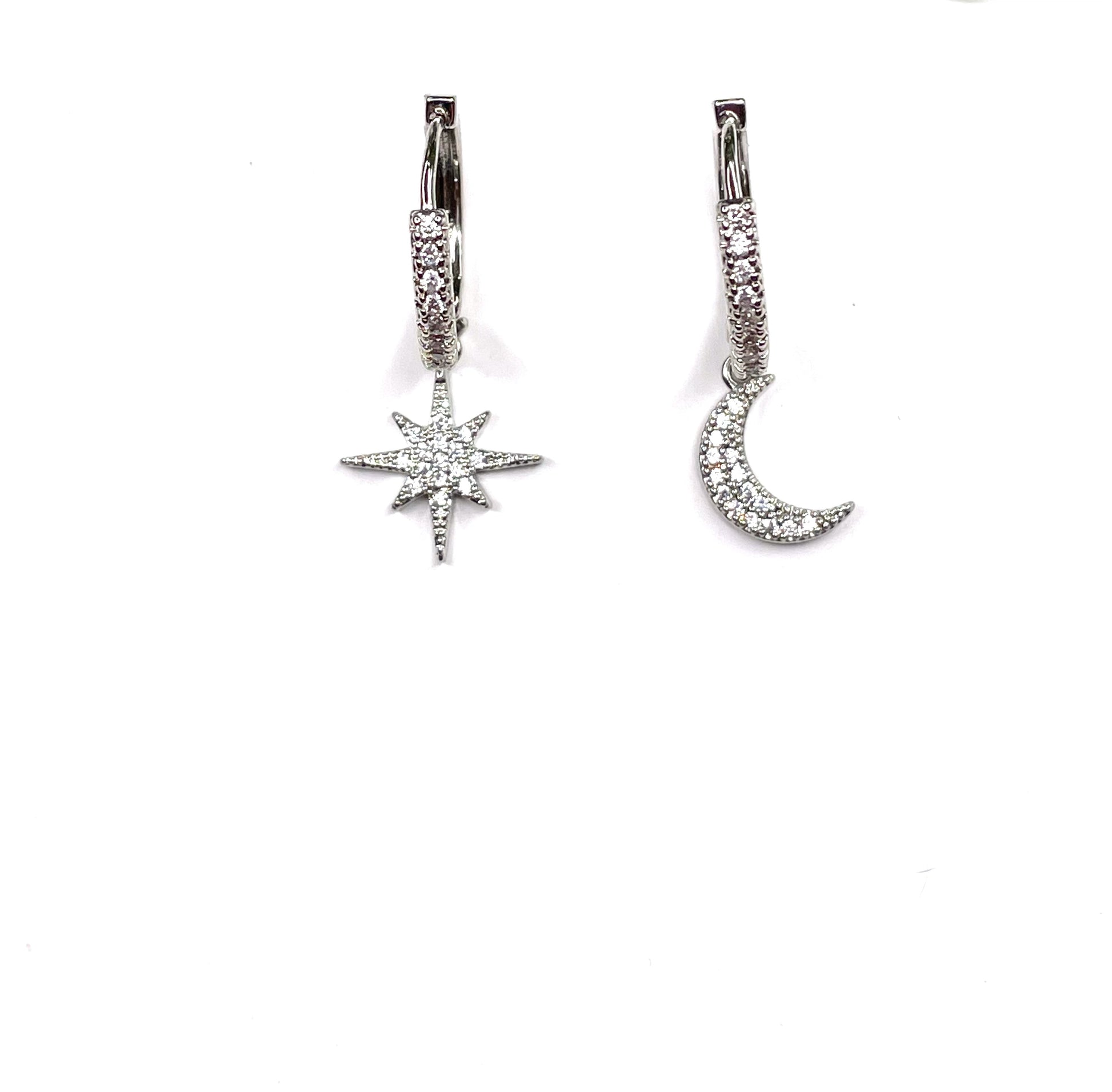 Sterling Silver Star Moon Celestial Huggie Earrings