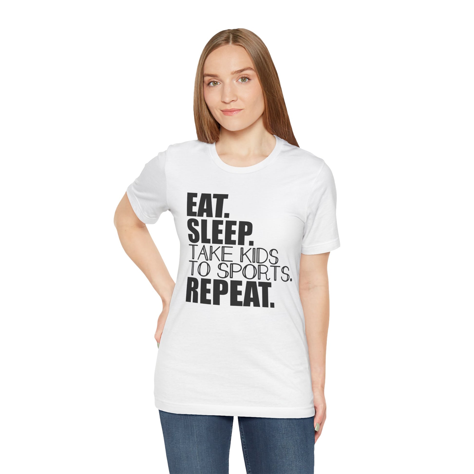 Eat. Sleep. Take Kids to Sports. Repeat. Women's T Shirt Mom's Tee Unisex Jersey Short Sleeve Tee Dad's Tee Gender Neutral