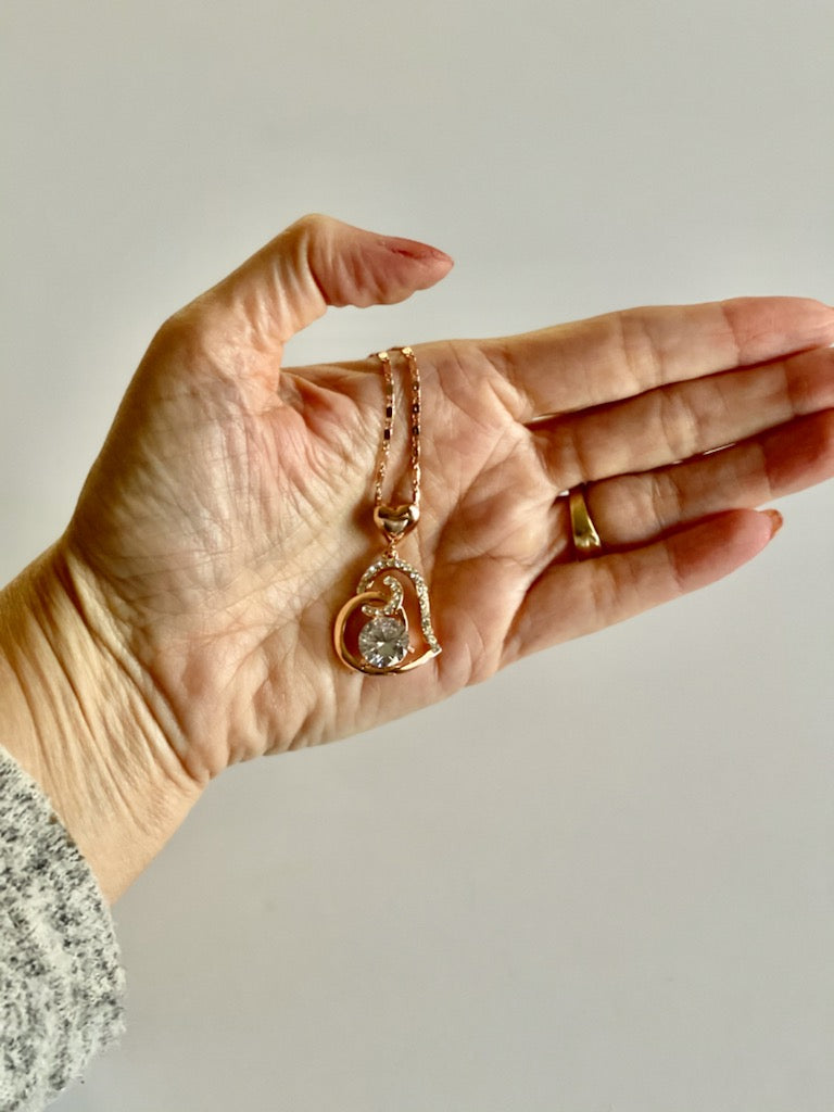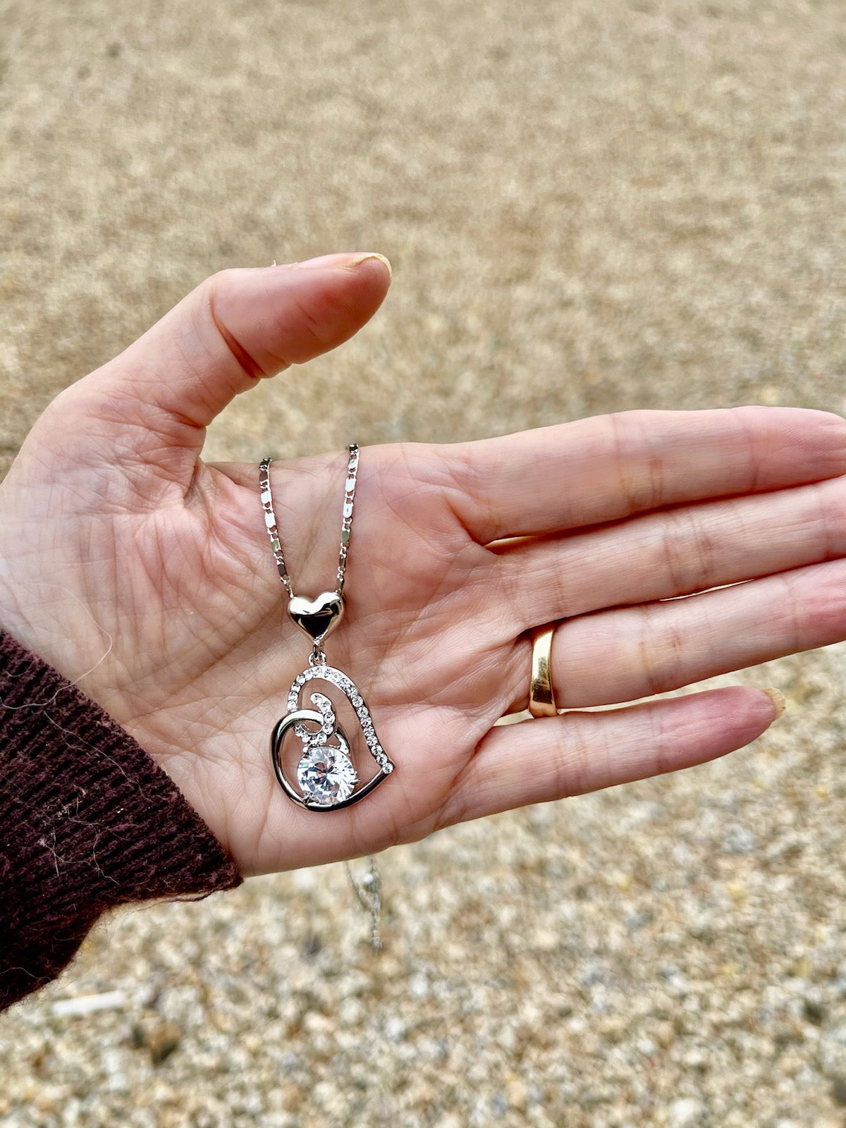 Our stunning double heart necklace pendant sparkles with a center diamond of approximately 1 carat, surrounded by high-quality AAA cz diamonds. Available in .925 sterling silver and rose gold, this necklace is a beautiful way to express love! It's perfect for yourself, a mother, daughter, grandmother, or friend. Eye-catching and elegant, it’s our best-selling necklace and a guaranteed compliment-getter