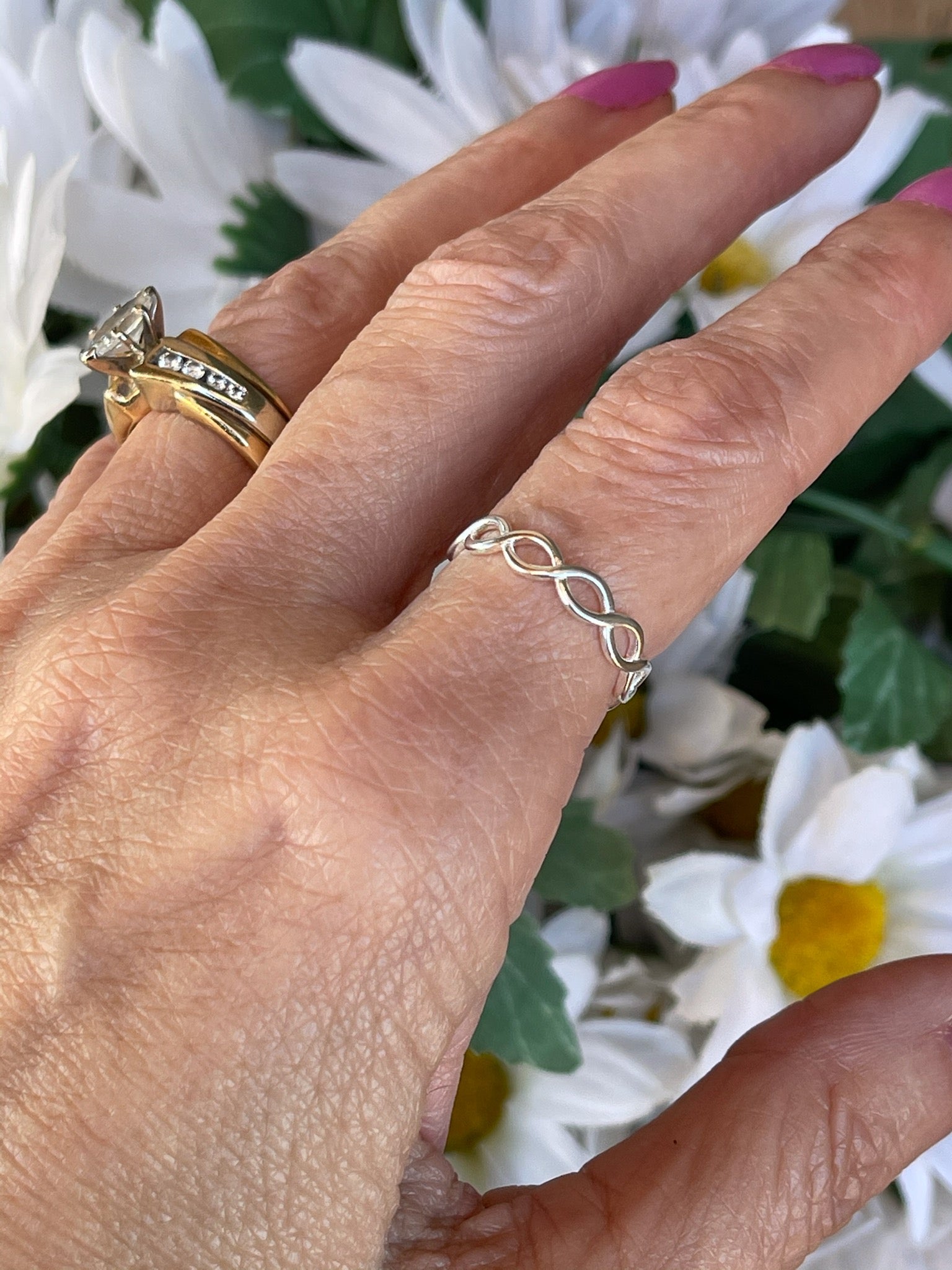 This delicate and trendy .925 sterling silver rope band ring is the perfect minimalist piece. With its smooth finish and radiant shine, it’s versatile enough to wear alone on any finger, even the thumb! It's great stacked with other rings for a stylish layered look.