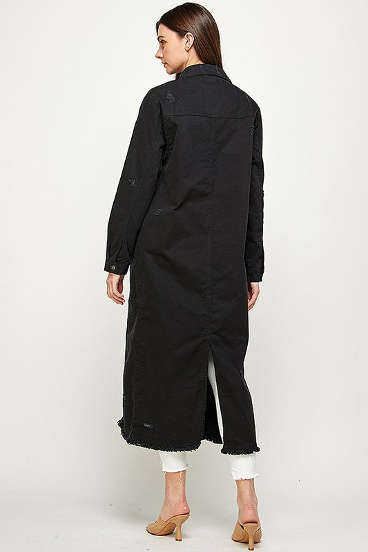 Elevate your casual wardrobe with our Women’s 100% Cotton Long Denim Jacket, designed with a distressed finish for that effortlessly cool vibe. Crafted from durable, non-stretch cotton, this oversized jacket layers easily over any outfit for a laid-back yet stylish look. Get that distressed finish for that modern edge.