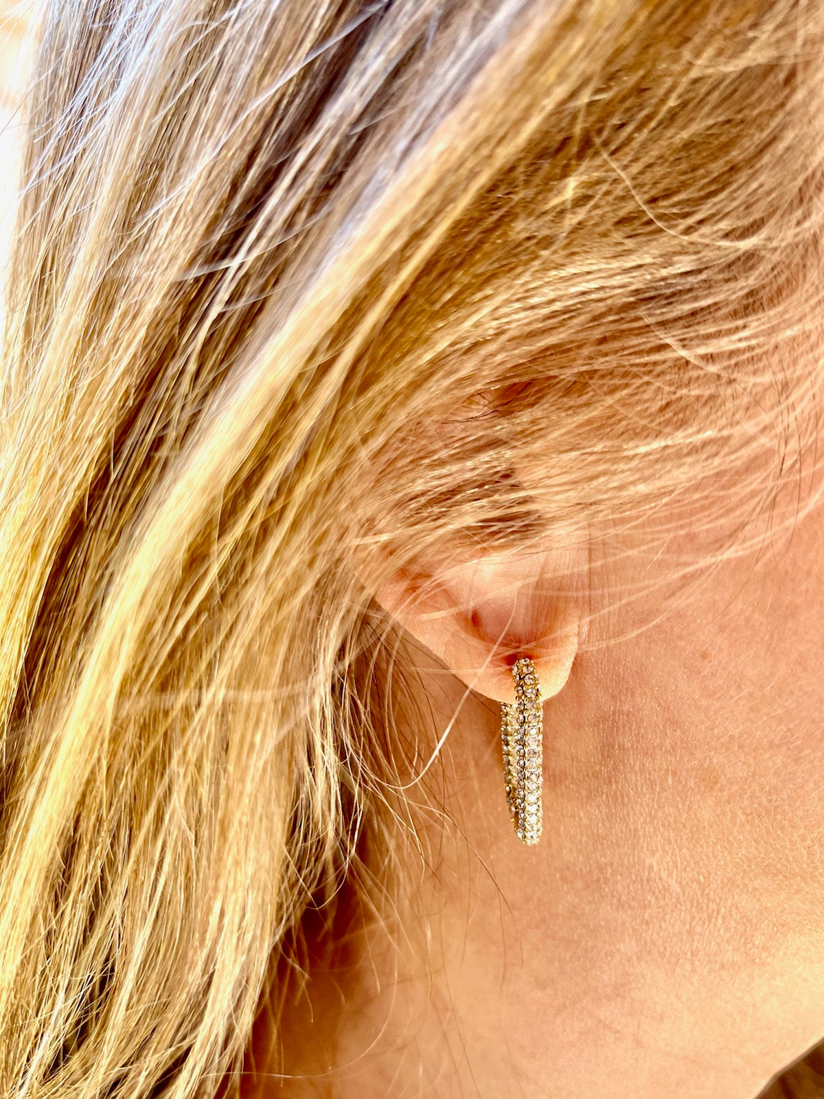 Experience the latest trend with these gold women's fashion earrings adorned with tiny CZ crystals. This minimalist earring is perfect for everyday wear to the office or casual outings. Elevate your outfit by adding these earrings for a touch of elegance, making your look more sophisticated. You'll surely fall in love with them!